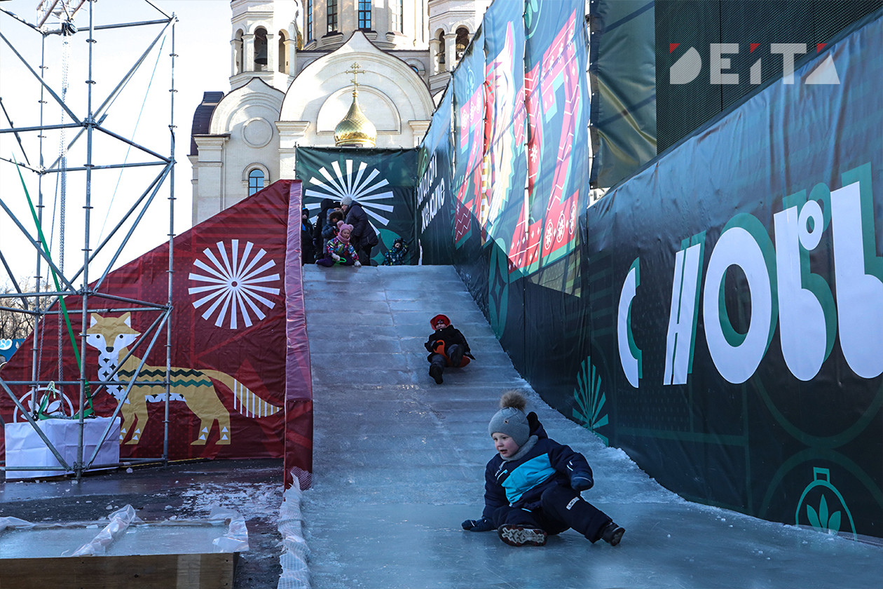 В минувшее воскресенье в парке Минного городка открылась ещё одна зона для семейного отдыха. В парке возвели большую ледяную горку, прокатиться на ней успели и дети, и взрослые.