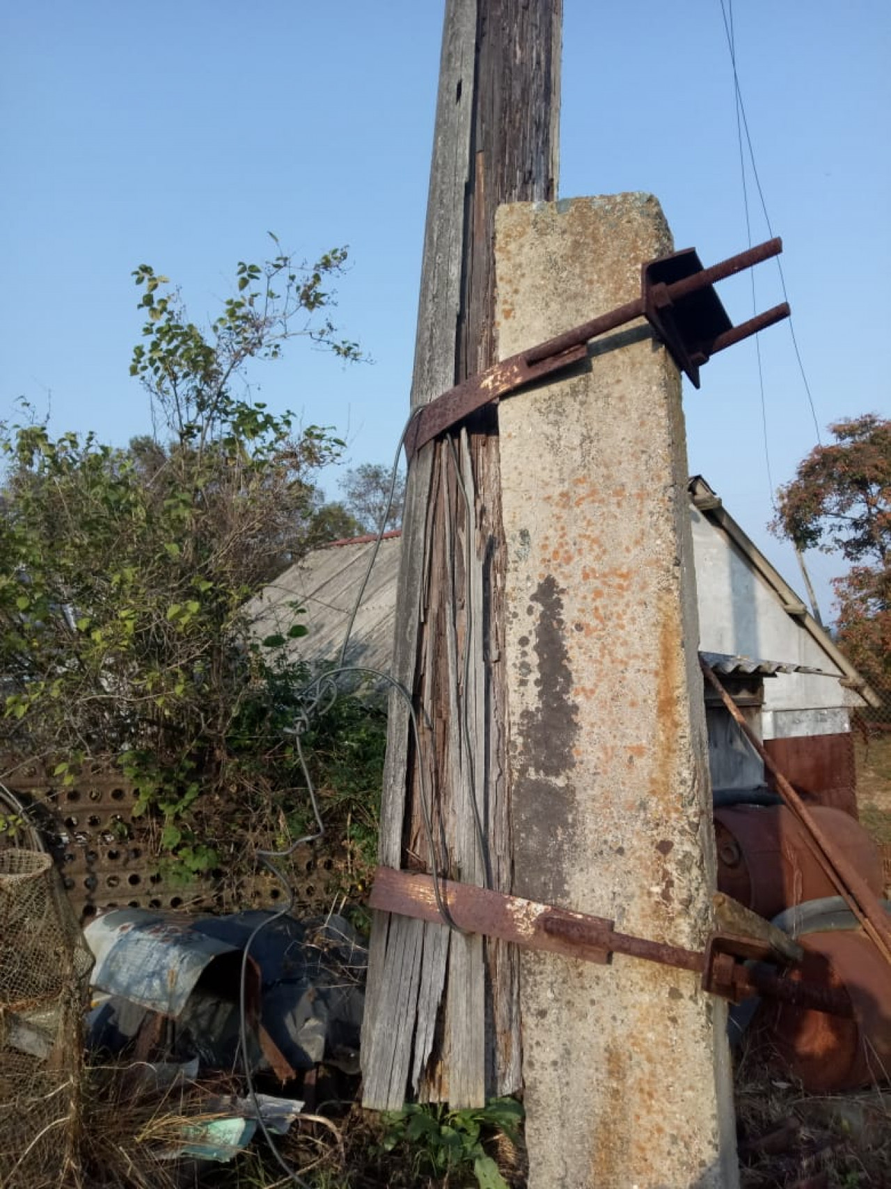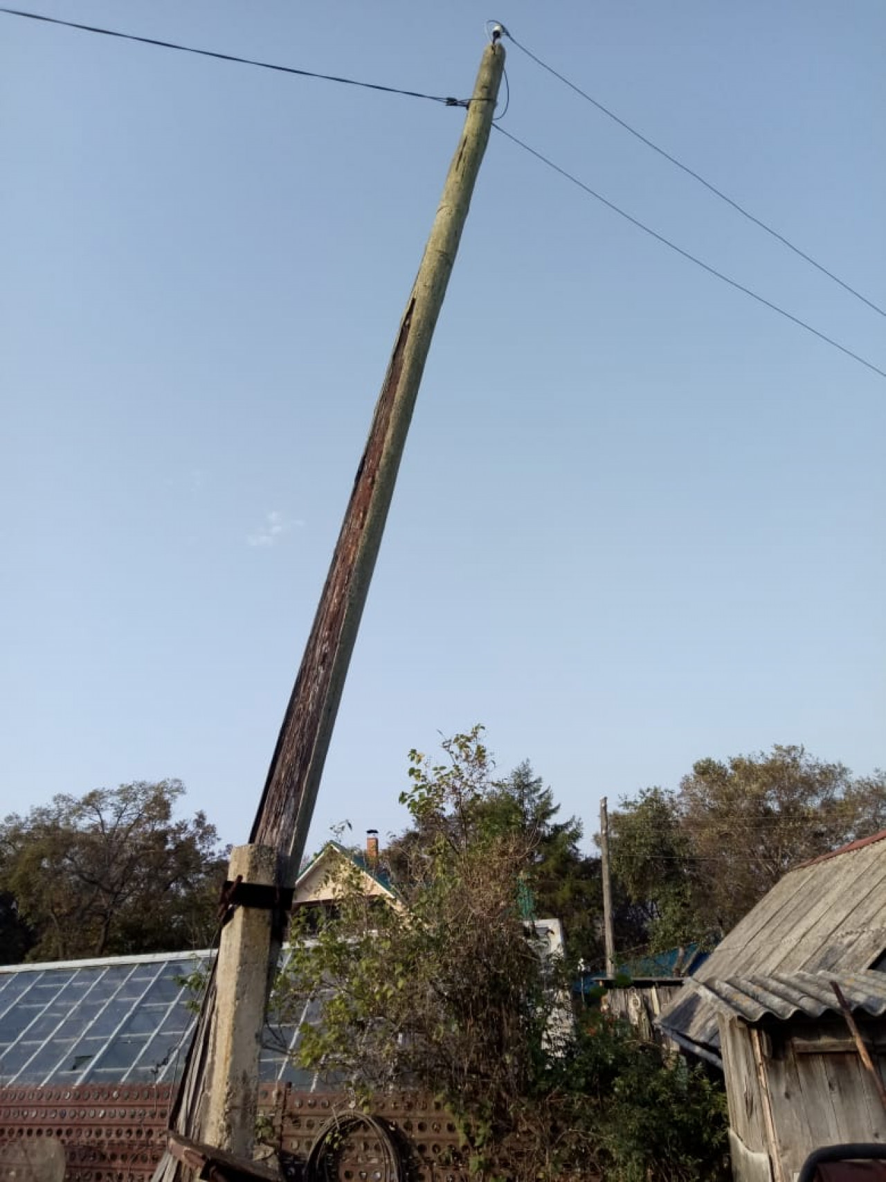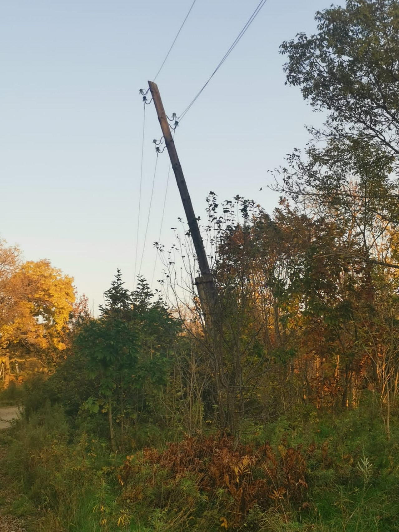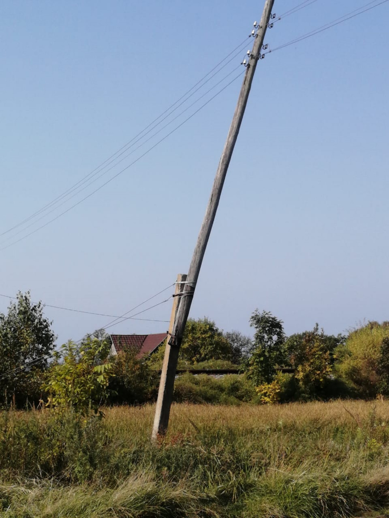 По информации от местной жительницы, самая плачевная ситуация – на улице Пионерской, возле домов №№ 4 и 8 столбы уже упали и держатся только на проводах.