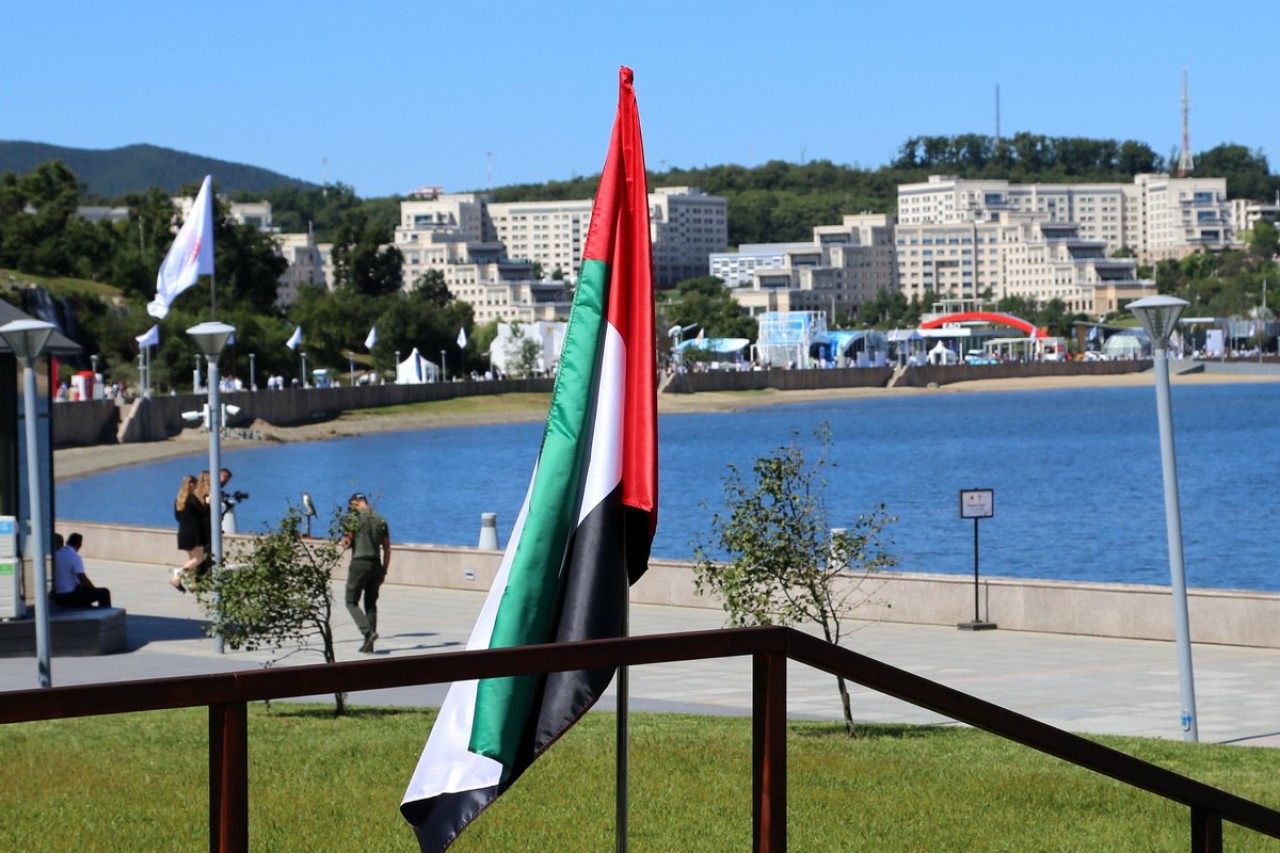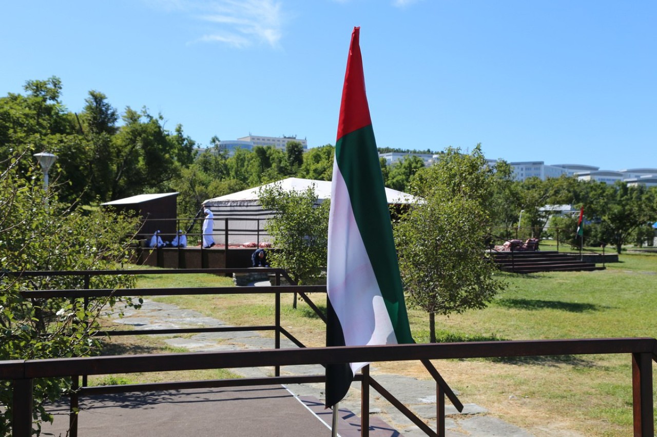 Два новых шатра установили на «Улице Дальнего Востока», где расположились гости из Объединенных Арабских Эмиратов, если судить по установленным рядом флагам.
