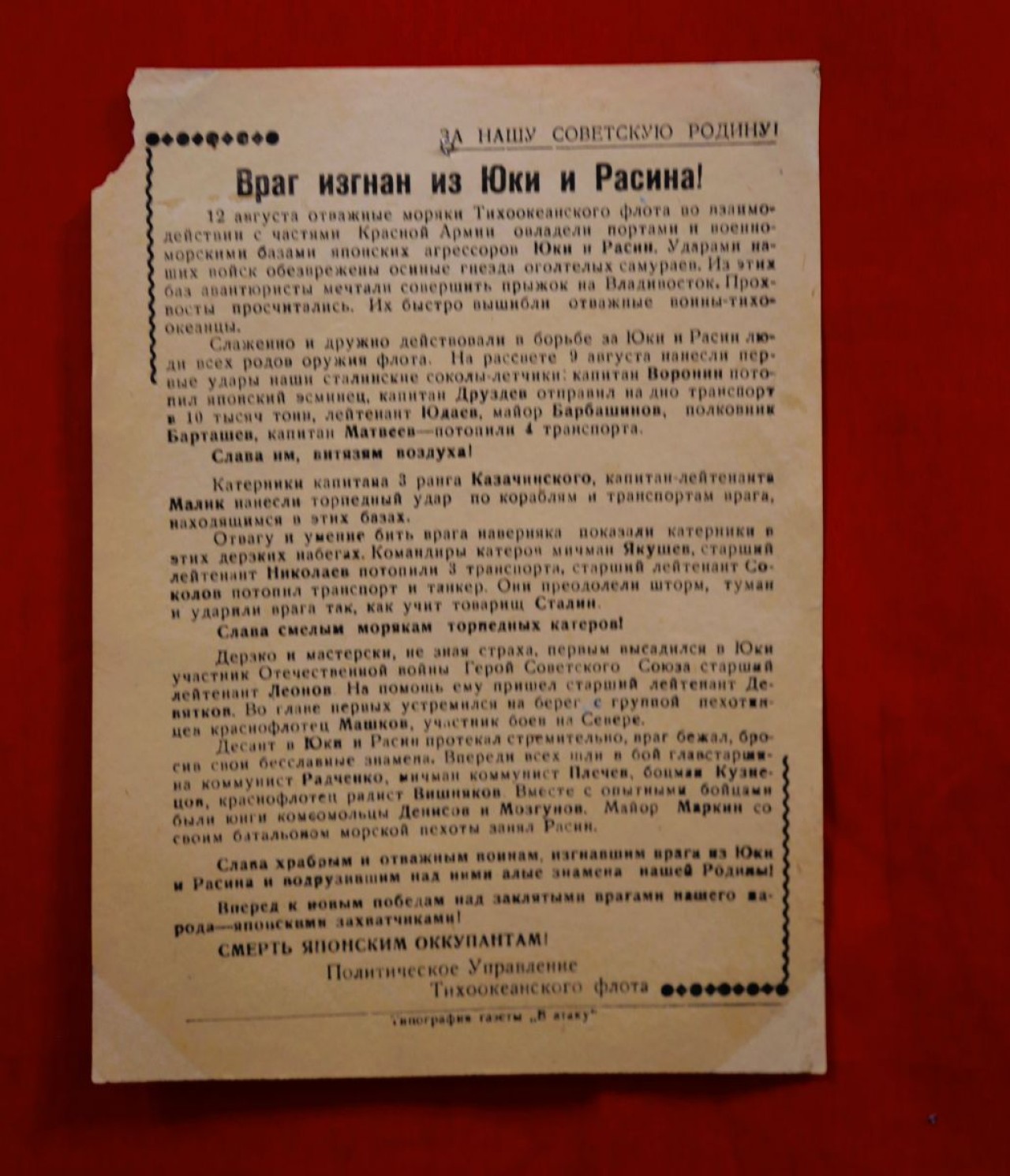 Тихоокеанский военно-морской флот вступил в войну с Японией в ночь с 8 на 9 августа 1945 года. После завершения войны в Европе Япония оставалась последним противником стран антифашистской коалиции. К тому времени войну Японии объявили несколько десятков стран, но японцы не собирались капитулировать и объявили о ведении войны до победного конца. Приблизить Победу помог советский Тихоокеанский флот: моряки-дальневосточники надежно прикрывали рубежи страны, нарушали вражеские коммуникации и поддерживали сухопутные войска.