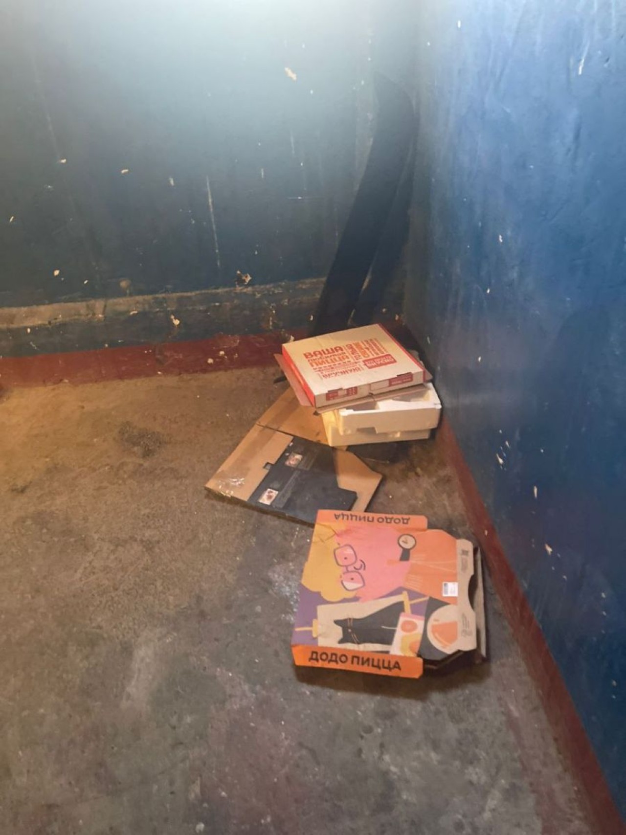 Одна из жительниц также обращает внимание на нарушения общественного порядка со стороны самих жильцов. Вероятно, ситуация в доме на Окатовой – пример из так называемой «теории разбитых окон», когда терпимость к мелким нарушением провоцирует граждан на другие нарушения. В частности, постоянный беспорядок соблазняет жильцов мусорить. Женщина пишет, что жильцы курят в подъездах и бросают окурки на пол, складывают коробки из-под пиццы в местах общего пользования, не донося их до камеры мусоропровода, а пакеты с мусором складывают в кучу возле камеры переполненного мусоропровода.