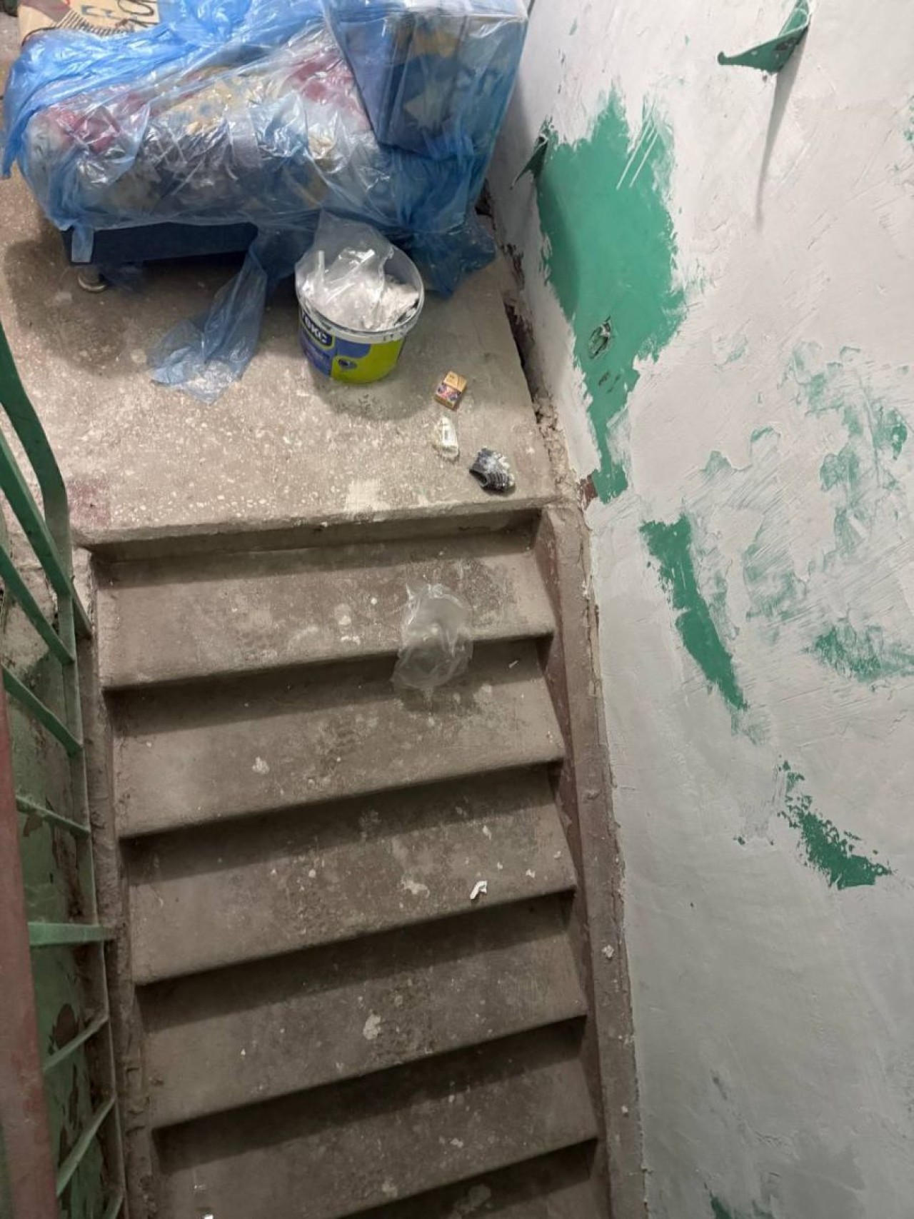 Ремонт по плану должен был завершиться в ноябре. К концу декабря в подъезде до сих пор стоят мешки со строительным мусором, лежат снятые почтовые ящики, со стен снято покрытие, из-за чего в подъезде очень пыльно. Рабочие на месте отсутствуют.